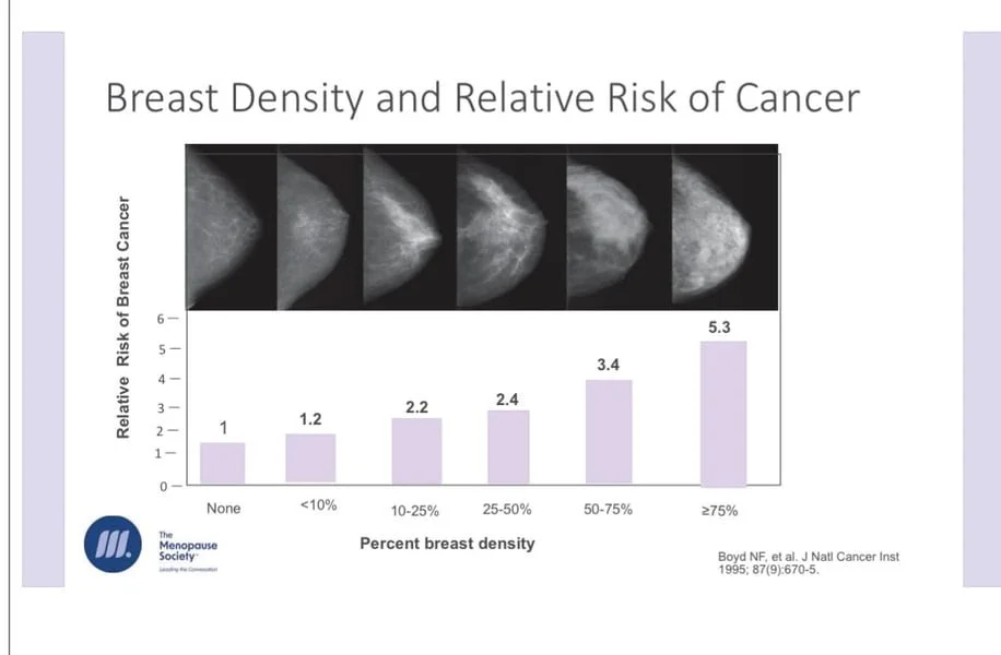 Women with the highest density have about a 4-6% lifetime risk versus 2-3% for the lowest, but screening adjustments lower that gap.If you’ve had a recent mammogram, be sure to note the density of your breasts as scored: A, B, C, D