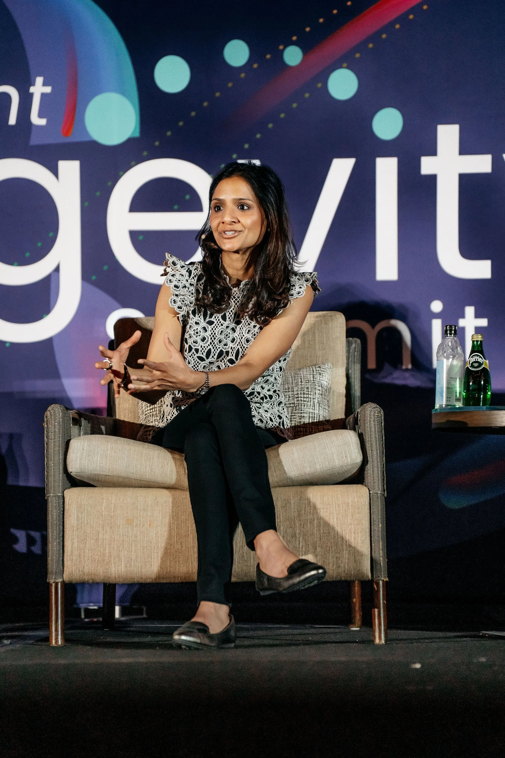 Dr. Agarwal speaking at the Vibrant Longevity Summit: she’s a star on a stage shared with Doctors Peter Attia, Sara Szal, Andrew Huberman, Gabrielle Lyon, Rhonda Patrick - just to name a few of the amazing people who came together for this conference.